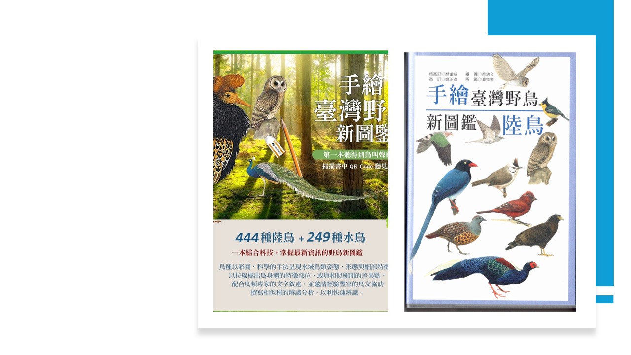提供鳥友在臺灣、金門、馬祖等地區方便辨識鳥種的一本圖鑑書。本圖鑑除提供野外辨識鳥種的基本型態、羽色等資訊外,也提供相關的生態資訊。並結合科技的QR Code,讓鳥友可以透過智慧型手機掃描連結網頁查詢,隨時搜尋到鳥種,聆聽鳥叫聲並掌握最新資訊。